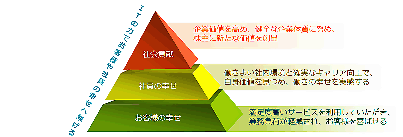 当社の企業文化は「幸せ」のキーワードから生まれています。「お客様の幸せ」、「社員の幸せ」そして「社会の幸せ」を共に実現していくことに努めて参りたいです。