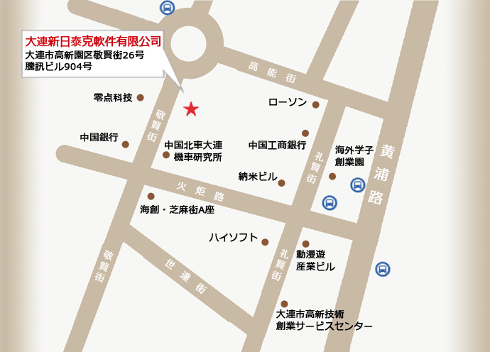 所在地 〒116023 中国大連市高新園区敬賢街26号騰訊大厦ビル904室 地図